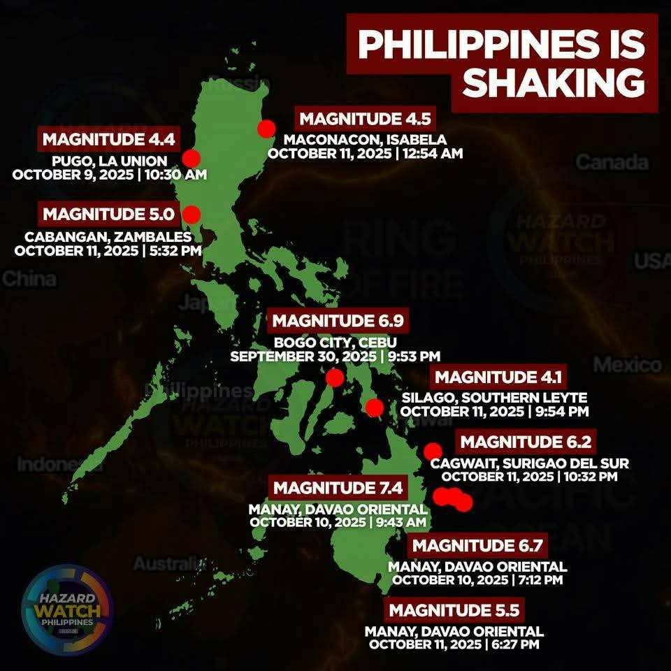 According to data collated from volcano discovery.com, the Philippines has had 3,224 quakes of magnitudes up to 7.4: in the last 14 days.